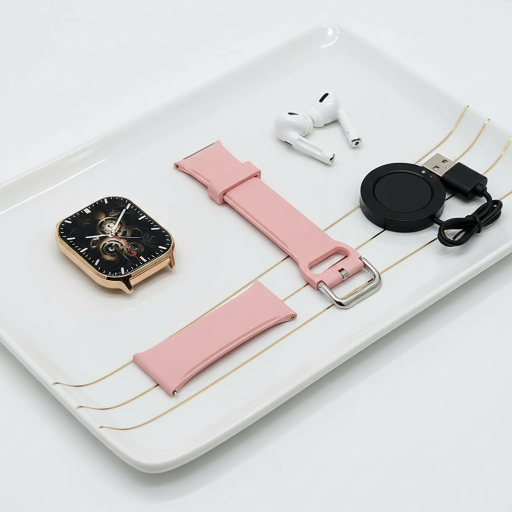 HERA 9 PRO MAX, a premium smartwatch with Free AirPods. Designed for those who value style, performance, and advanced health tracking, this smartwatch combines elegant design, high-end technology, and complete fitness monitoring in one device.